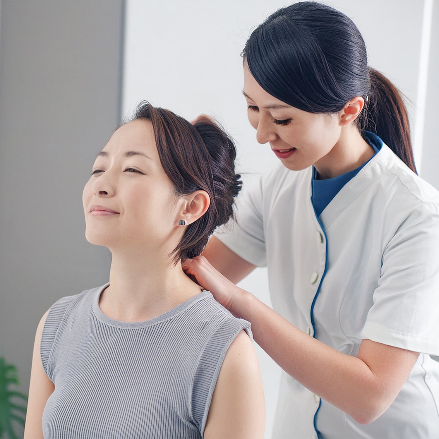 デスクワークで猫背になり、肩こりがひどかったのが来院のきっかけでした。最初は小顔効果に半信半疑でしたが、体の歪みを整えながら顔の筋肉までアプローチする施術を受けて、顔のたるみが改善。姿勢も良くなり、見た目の印象が若返ったように感じます。
